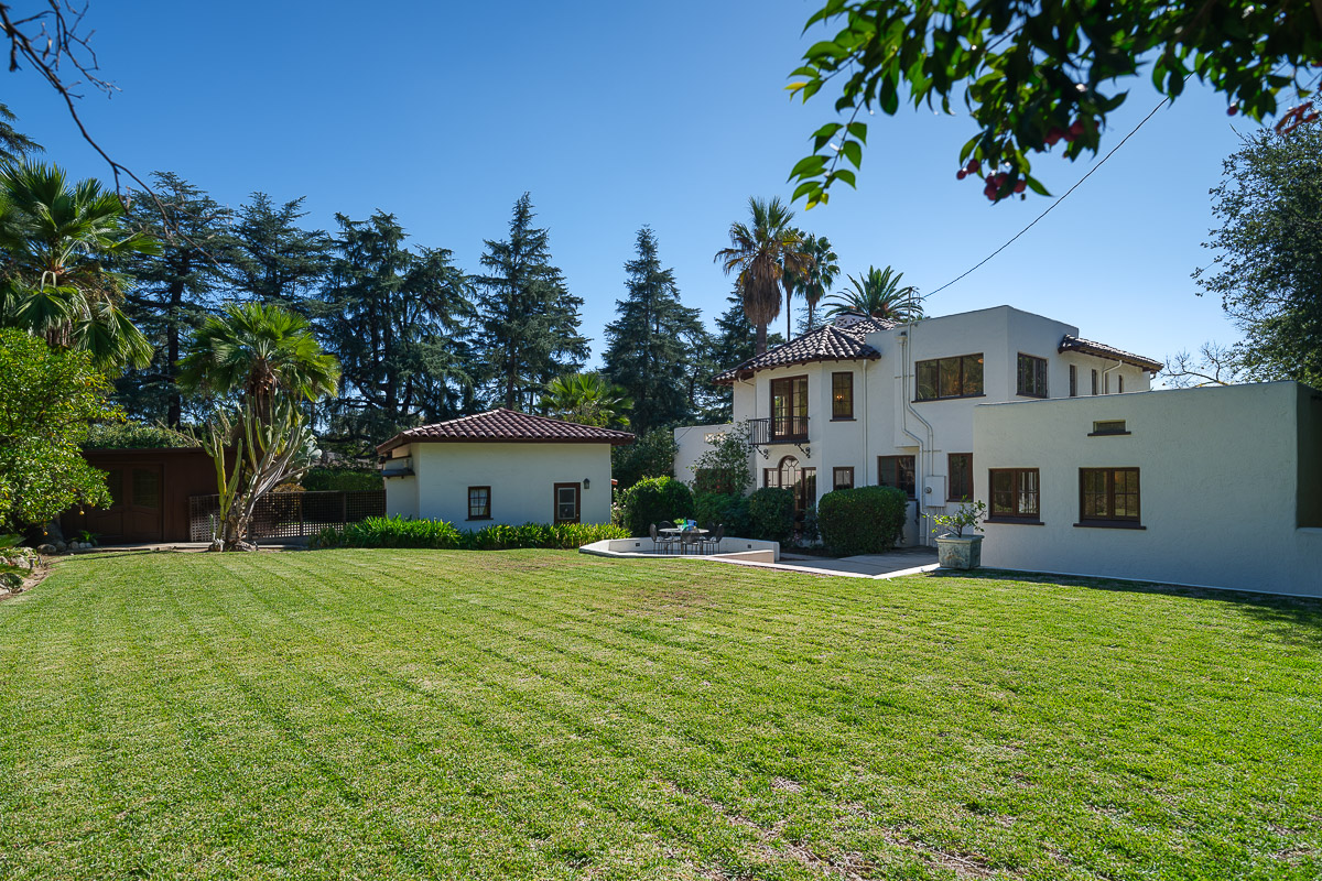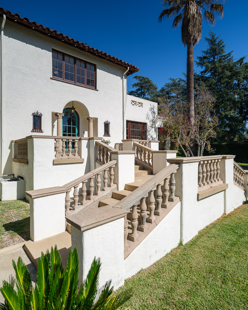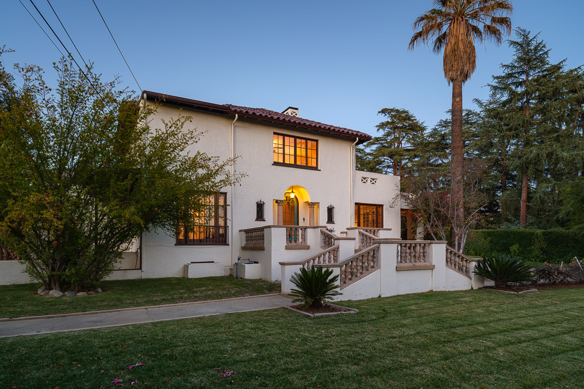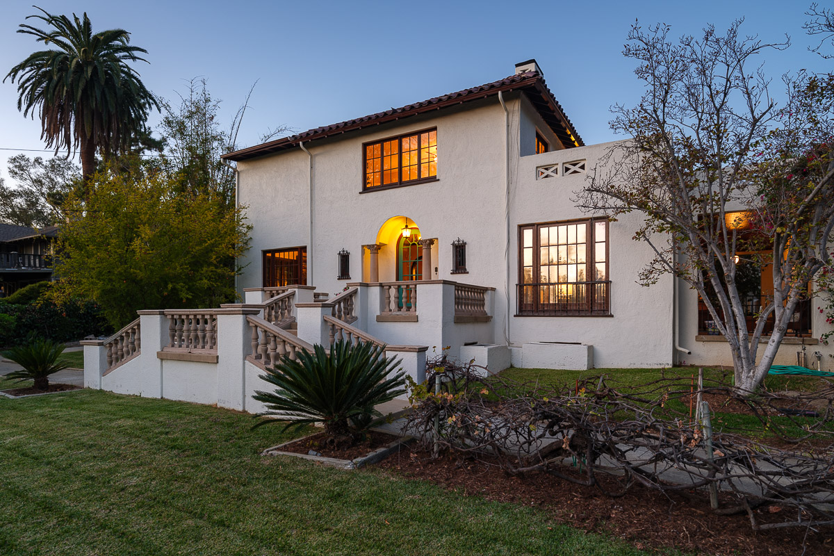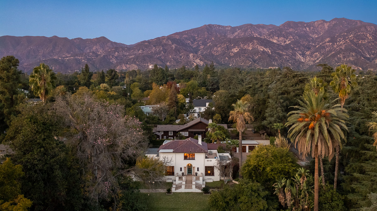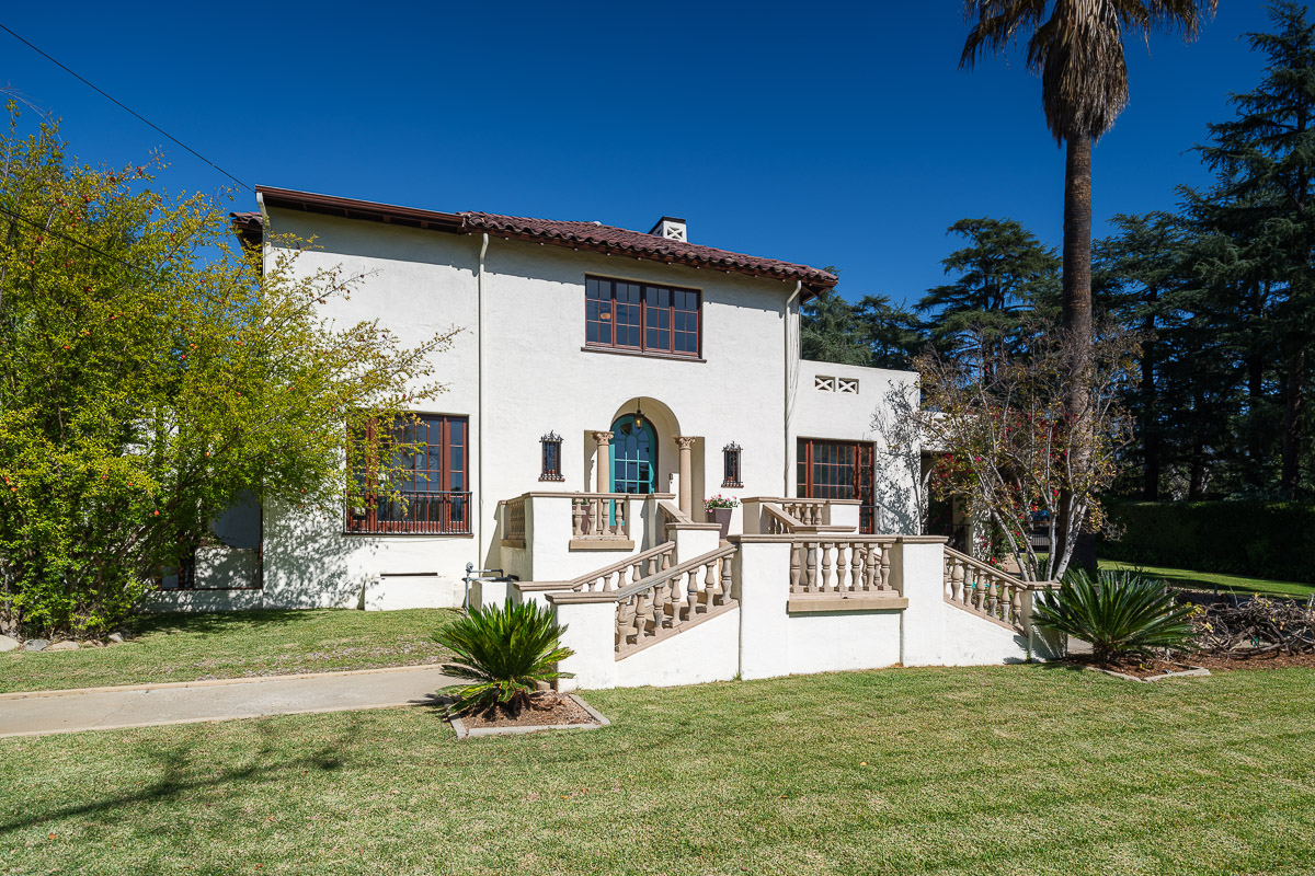 One of the crown jewels of Altadena, this magnificent 1922 Italian Revival, attributed to J. W. Woodworth & Son with Kenneth Gordon acting as the Architect, is sited on over one-half acre on the famed Christmas Tree Lane. It exemplifies old world craftsmanship as well as the elegance and opulence of the Golden Age of architecture. Some of the incredible features in this 3,497 square foot four bedroom, four bath home, plus an office and detached guest house, includes a grand entry, tall coved ceilings, appealing arches, gleaming hardwood floors, balconies, terraces, exquisite original wrought iron hardware, leaded glass built-ins, soaring Palladian windows, custom milled doors, as well as wonderful woodwork throughout. The residence has been lovingly cared for and has two exquisitely remodeled baths including the spa-like bathroom that adjoins the spacious primary suite that is wrapped in windows and opens out to an expansive balcony that showcases sweeping views of our majestic San Gabriel Mountains.