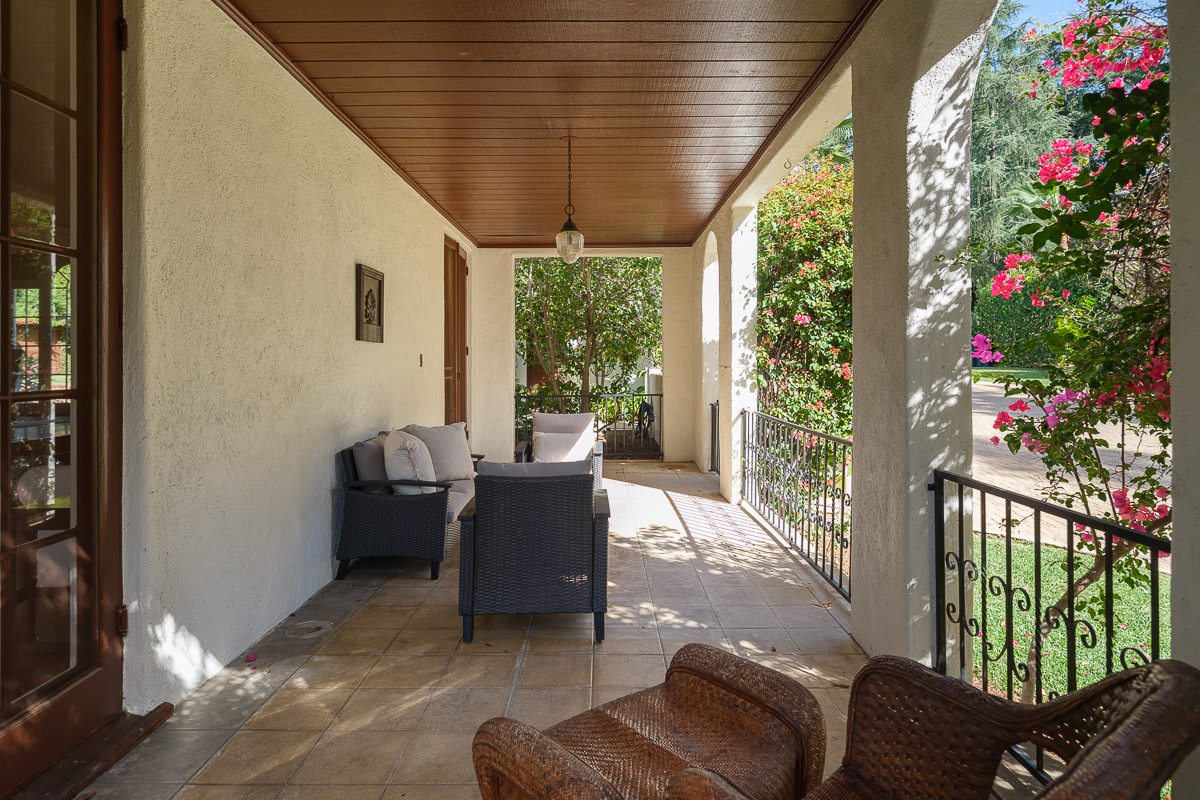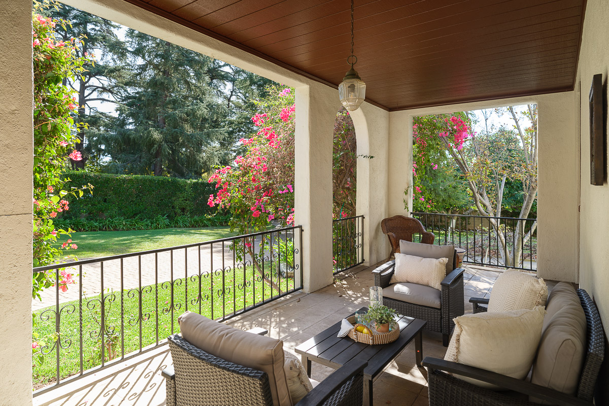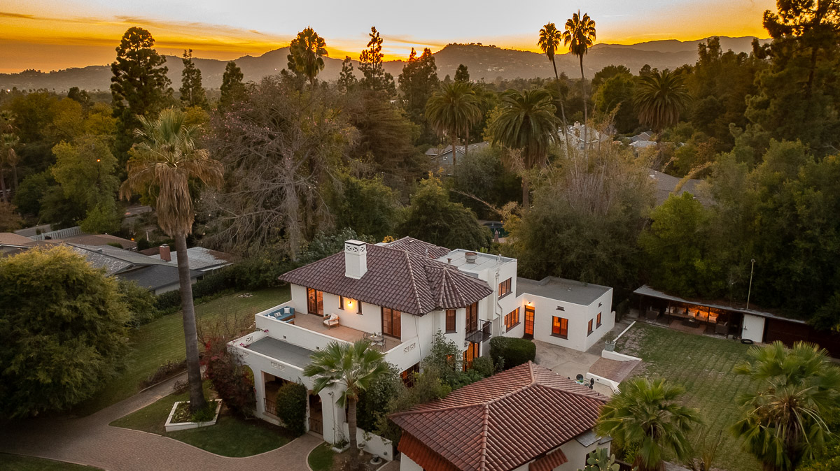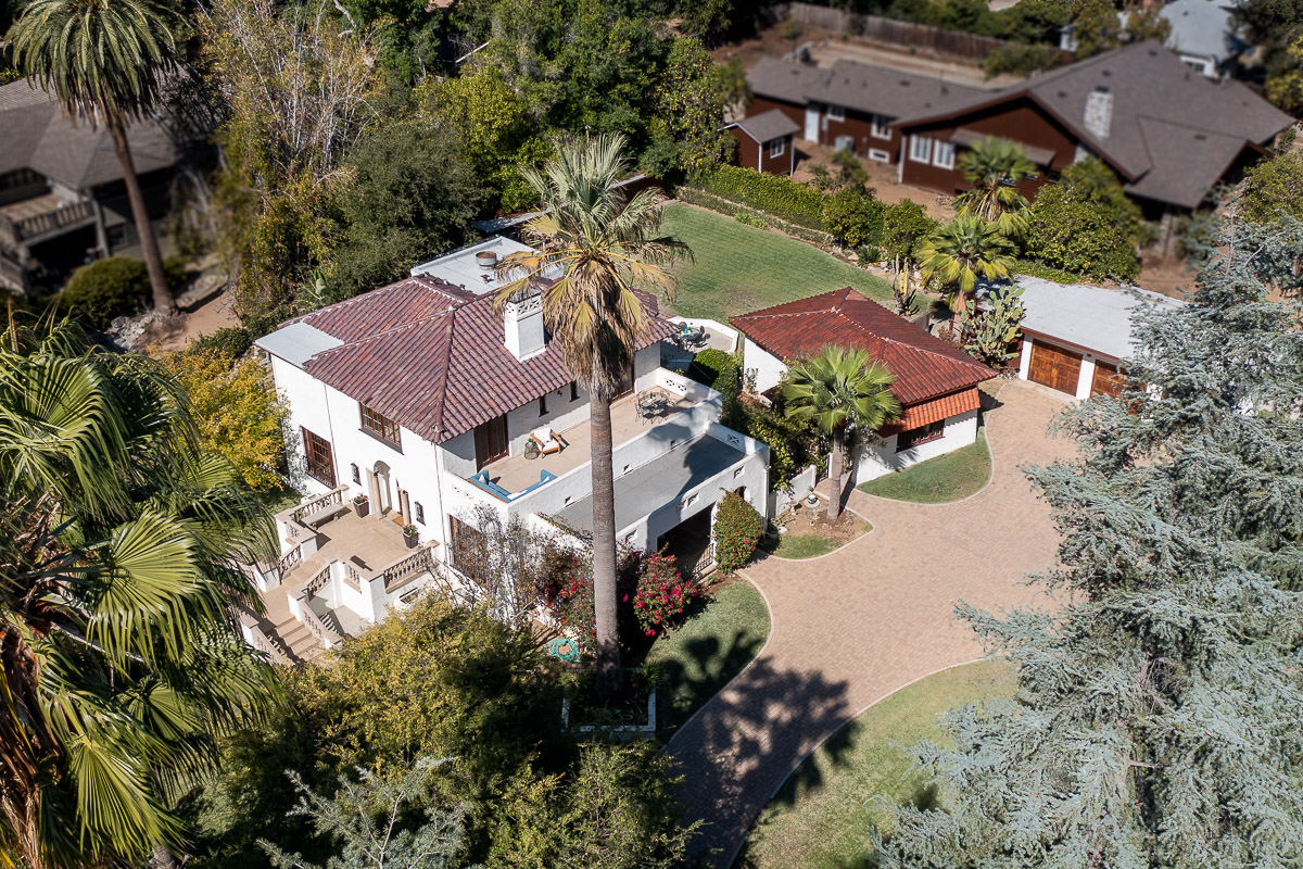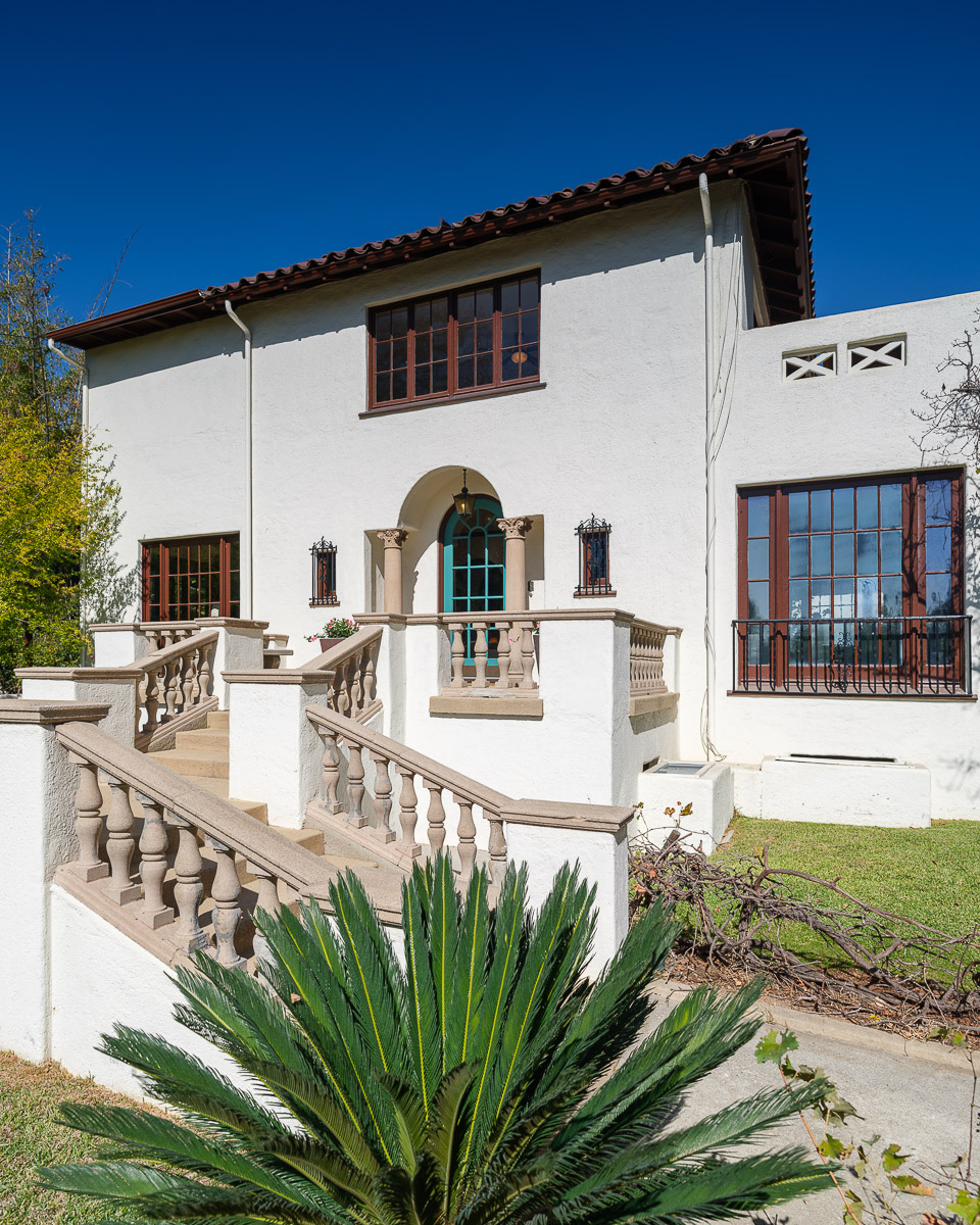 One of the crown jewels of Altadena, this magnificent 1922 Italian Revival, attributed to J. W. Woodworth & Son with Kenneth Gordon acting as the Architect, is sited on over one-half acre on the famed Christmas Tree Lane. It exemplifies old world craftsmanship as well as the elegance and opulence of the Golden Age of architecture. Some of the incredible features in this 3,497 square foot four bedroom, four bath home, plus an office and detached guest house, includes a grand entry, tall coved ceilings, appealing arches, gleaming hardwood floors, balconies, terraces, exquisite original wrought iron hardware, leaded glass built-ins, soaring Palladian windows, custom milled doors, as well as wonderful woodwork throughout. The residence has been lovingly cared for and has two exquisitely remodeled baths including the spa-like bathroom that adjoins the spacious primary suite that is wrapped in windows and opens out to an expansive balcony that showcases sweeping views of our majestic San Gabriel Mountains.