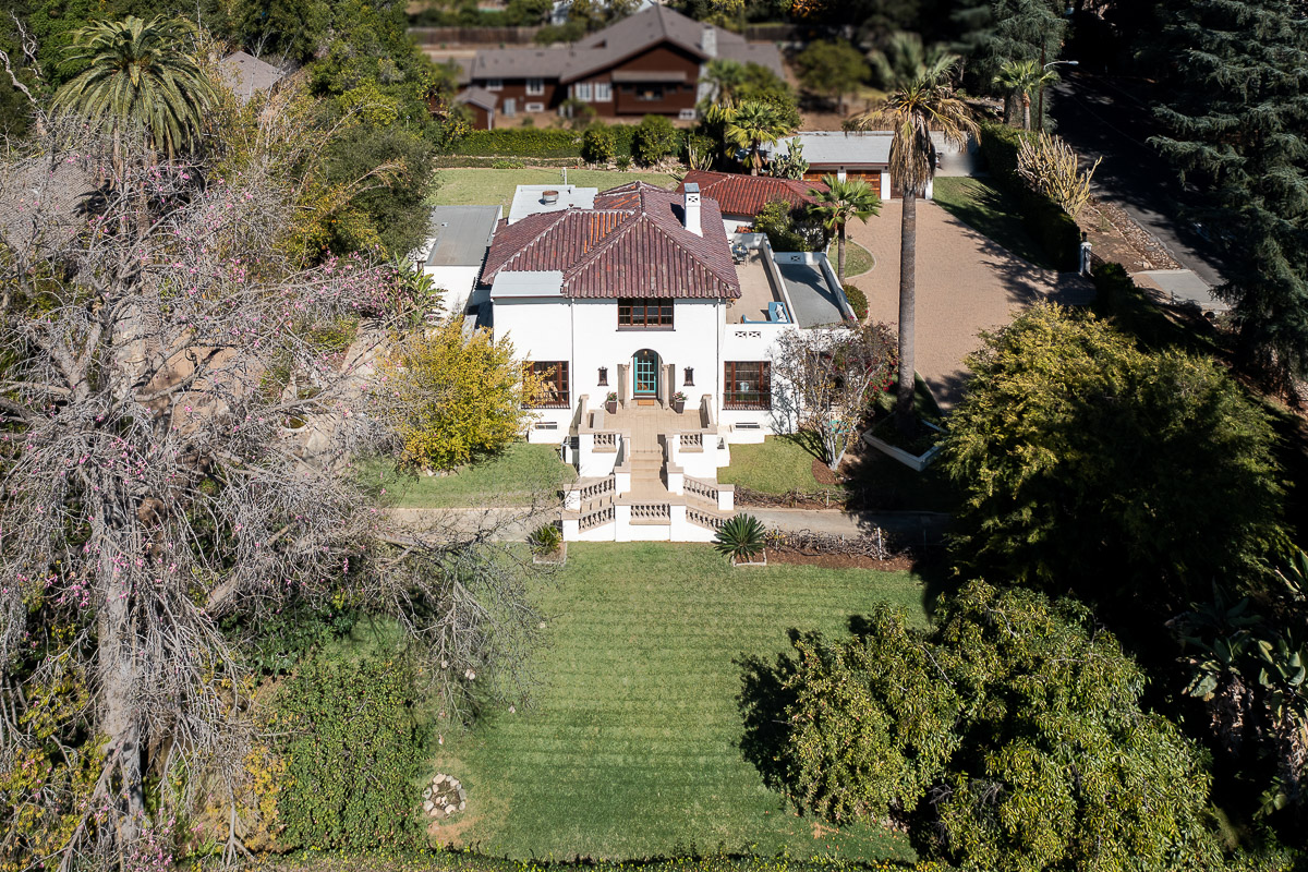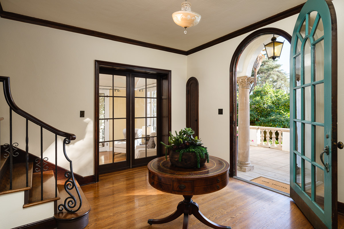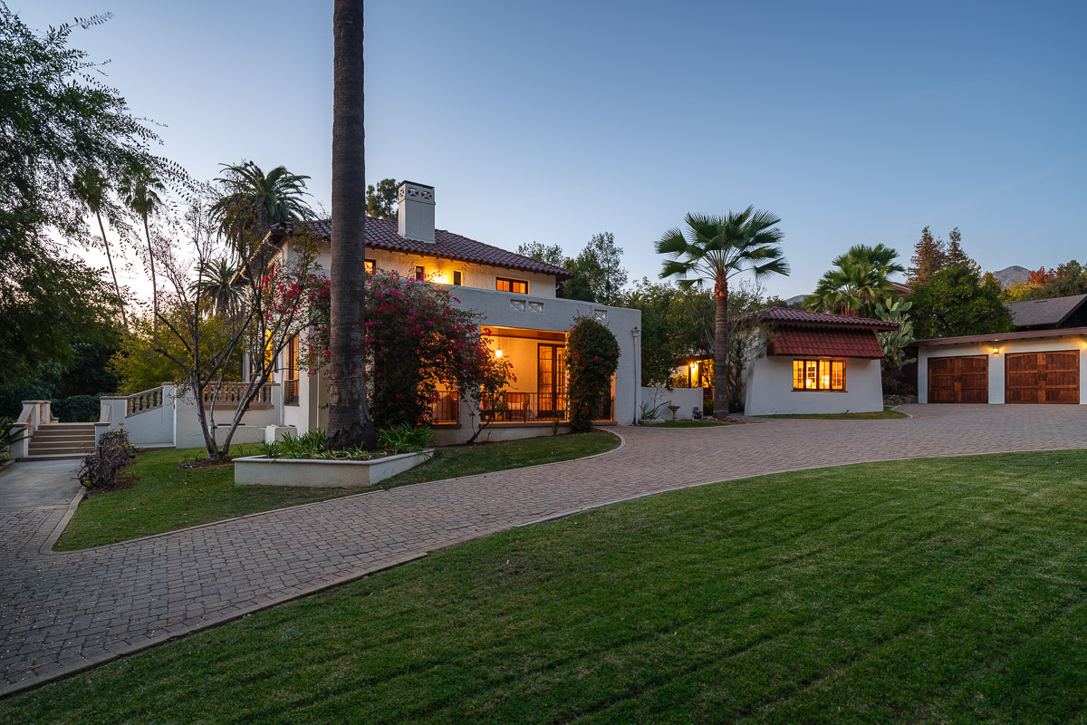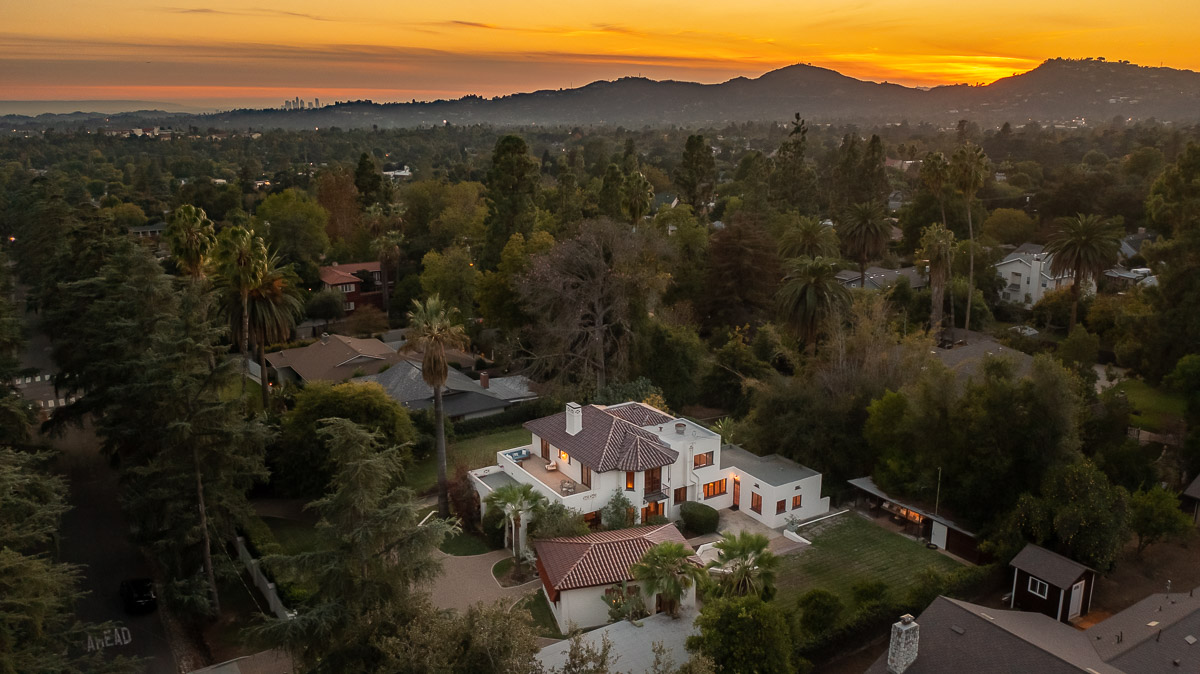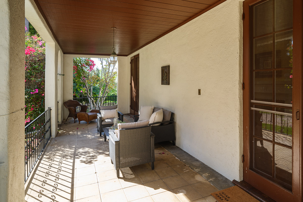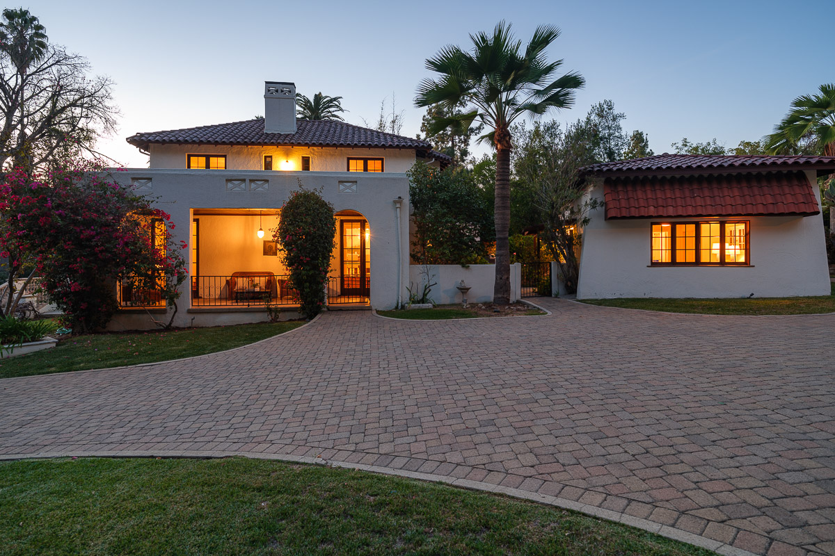 One of the crown jewels of Altadena, this magnificent 1922 Italian Revival, attributed to J. W. Woodworth & Son with Kenneth Gordon acting as the Architect, is sited on over one-half acre on the famed Christmas Tree Lane. It exemplifies old world craftsmanship as well as the elegance and opulence of the Golden Age of architecture. Some of the incredible features in this 3,497 square foot four bedroom, four bath home, plus an office and detached guest house, includes a grand entry, tall coved ceilings, appealing arches, gleaming hardwood floors, balconies, terraces, exquisite original wrought iron hardware, leaded glass built-ins, soaring Palladian windows, custom milled doors, as well as wonderful woodwork throughout. The residence has been lovingly cared for and has two exquisitely remodeled baths including the spa-like bathroom that adjoins the spacious primary suite that is wrapped in windows and opens out to an expansive balcony that showcases sweeping views of our majestic San Gabriel Mountains.