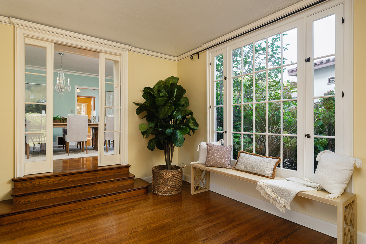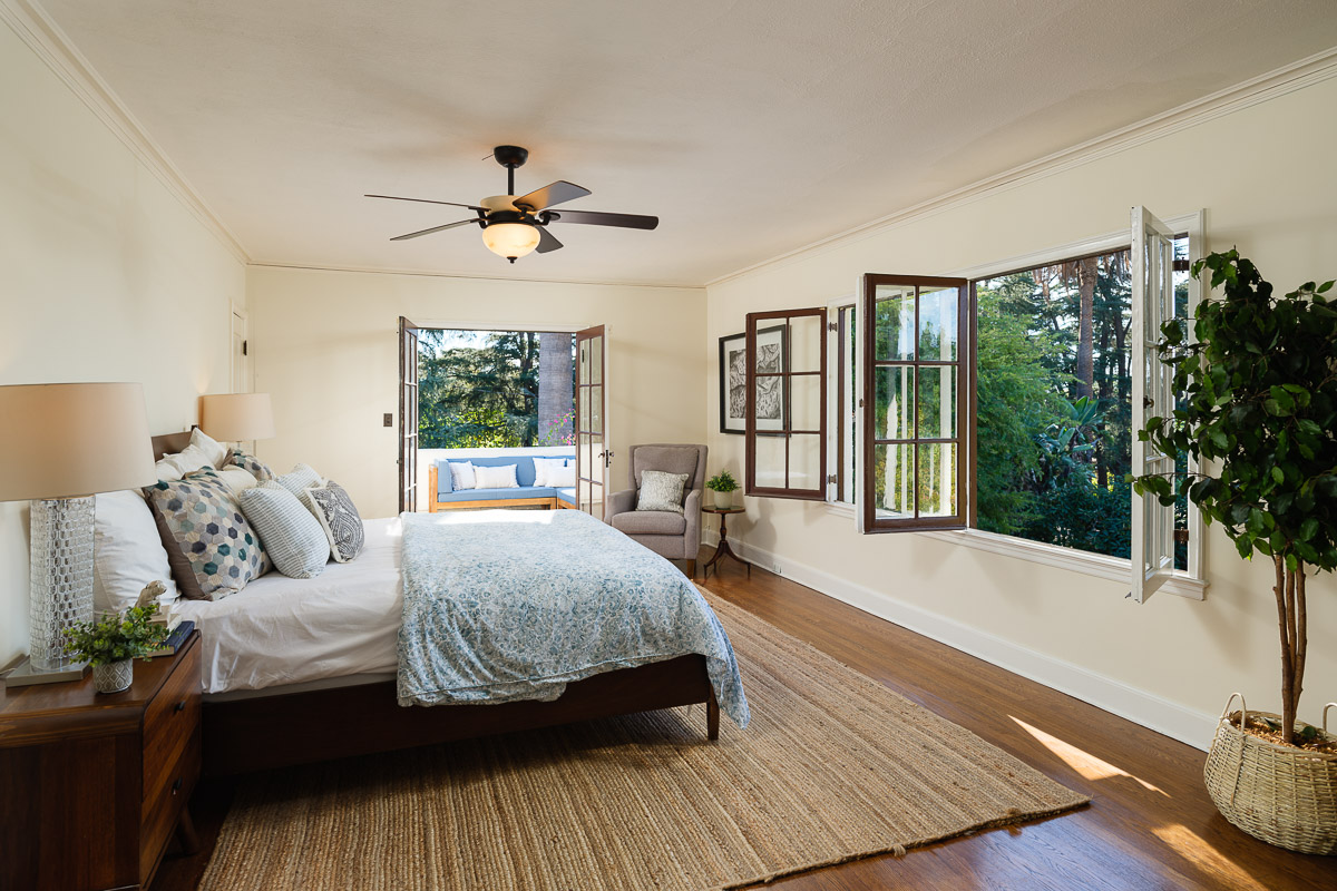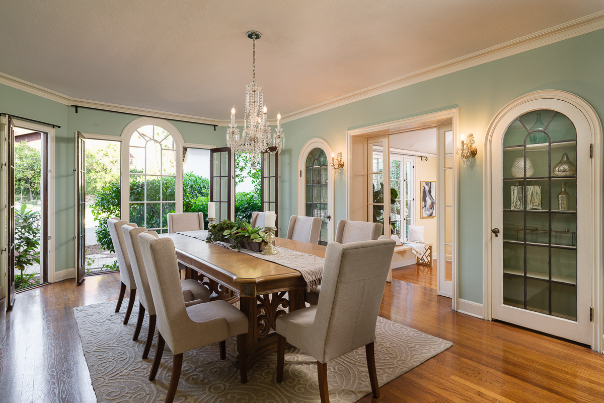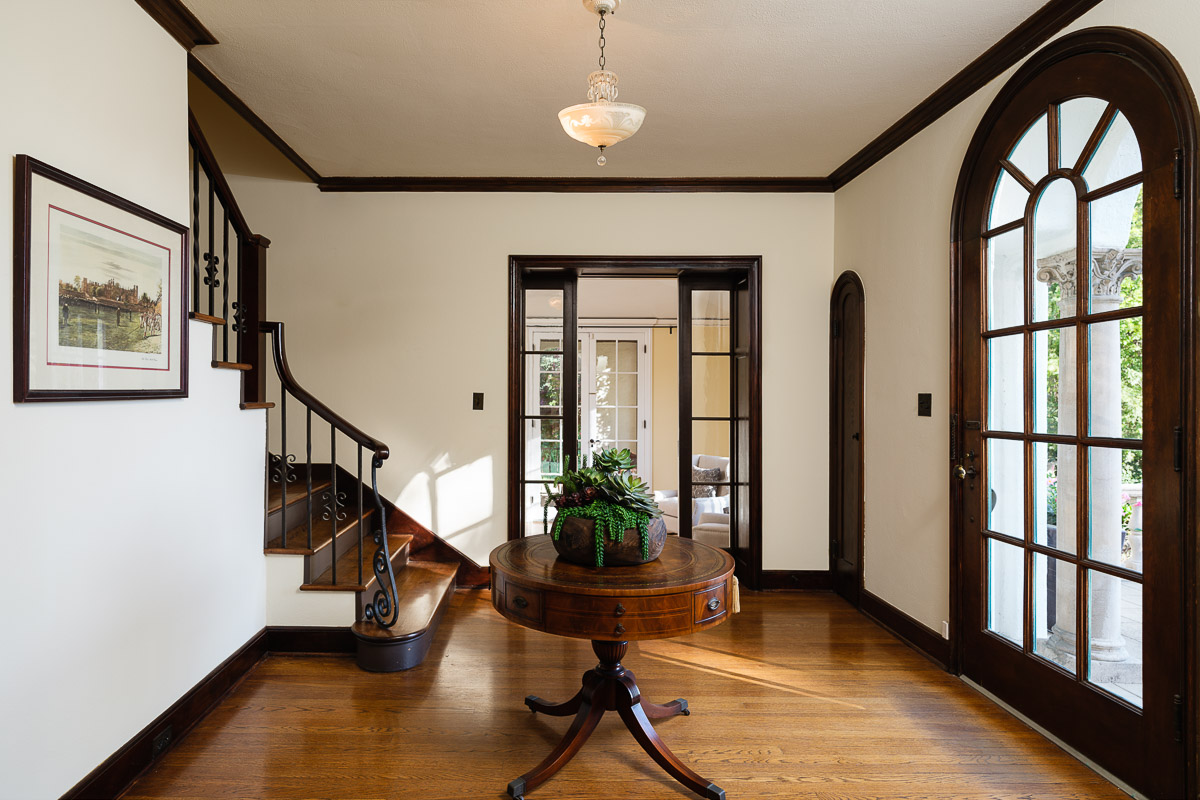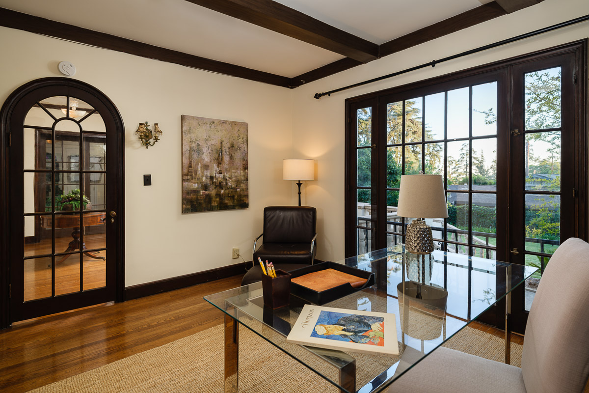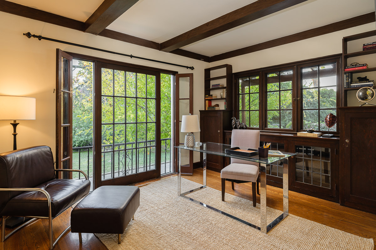 One of the crown jewels of Altadena, this magnificent 1922 Italian Revival, attributed to J. W. Woodworth & Son with Kenneth Gordon acting as the Architect, is sited on over one-half acre on the famed Christmas Tree Lane. It exemplifies old world craftsmanship as well as the elegance and opulence of the Golden Age of architecture. Some of the incredible features in this 3,497 square foot four bedroom, four bath home, plus an office and detached guest house, includes a grand entry, tall coved ceilings, appealing arches, gleaming hardwood floors, balconies, terraces, exquisite original wrought iron hardware, leaded glass built-ins, soaring Palladian windows, custom milled doors, as well as wonderful woodwork throughout. The residence has been lovingly cared for and has two exquisitely remodeled baths including the spa-like bathroom that adjoins the spacious primary suite that is wrapped in windows and opens out to an expansive balcony that showcases sweeping views of our majestic San Gabriel Mountains.